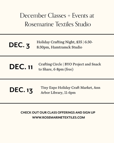I am excited to share that I am offering my first ever in-person sewing classes! These classes are perfectly suited to beginners who want to learn how to use their machine. I just added a one-day class and a multi-week class option for learning to sew. I also scheduled a new mending class for May. Please let me know if there are other classes you'd like to see me offer or bring back. On April 25th will be the 7th birthday of Rosemarine Textiles and I am scheming up what I want to do to celebrate. Until then, enjoy my...