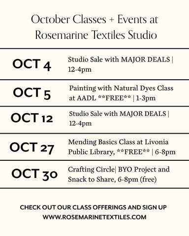 I'm clearing out my studio and starting a fresh chapter of Rosemarine Textiles. Come snag major deals and enjoy snacks and drinks.