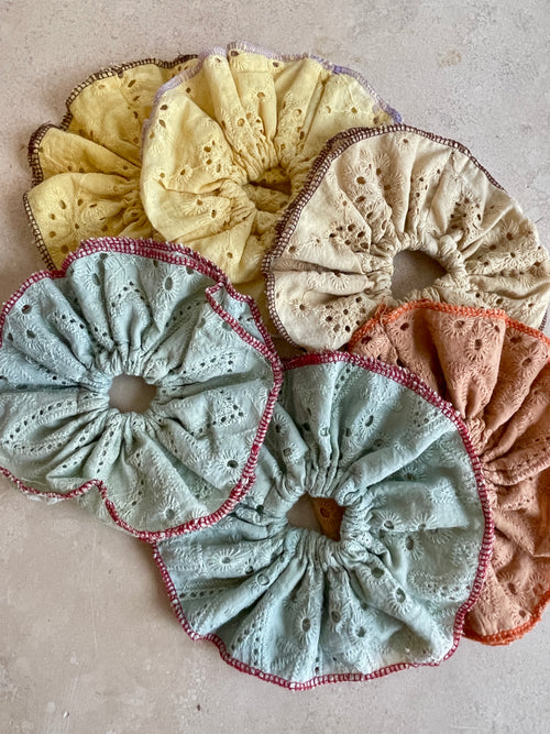Double Layer Cotton Eyelet Scrunchies | Multicolor